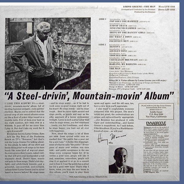 hier geht es gleich um zwei Songs von Lorne Greene, besser als Ben Cartwright von der Ponderosa bekannt.