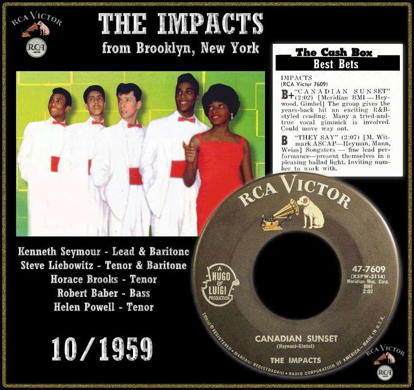 ist ein Foto der Impacts zu sehen und auch eine Auflistung der erschienenen Singles und die Mitglieder dieser Gruppe. In den frühen 60er Jahren gab es eine weitere Gruppe mit dem Namen "Impacts", diese machte jedoch instrumental Surf.