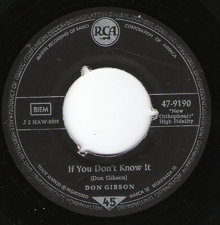 Der wohl bekannteste Titel von Don Gibson ist "Oh Lonesome Me" und die Rückseite "I Can't Stop Lovin' You" wurde etwas später von Ray Charles noch populärer gemacht