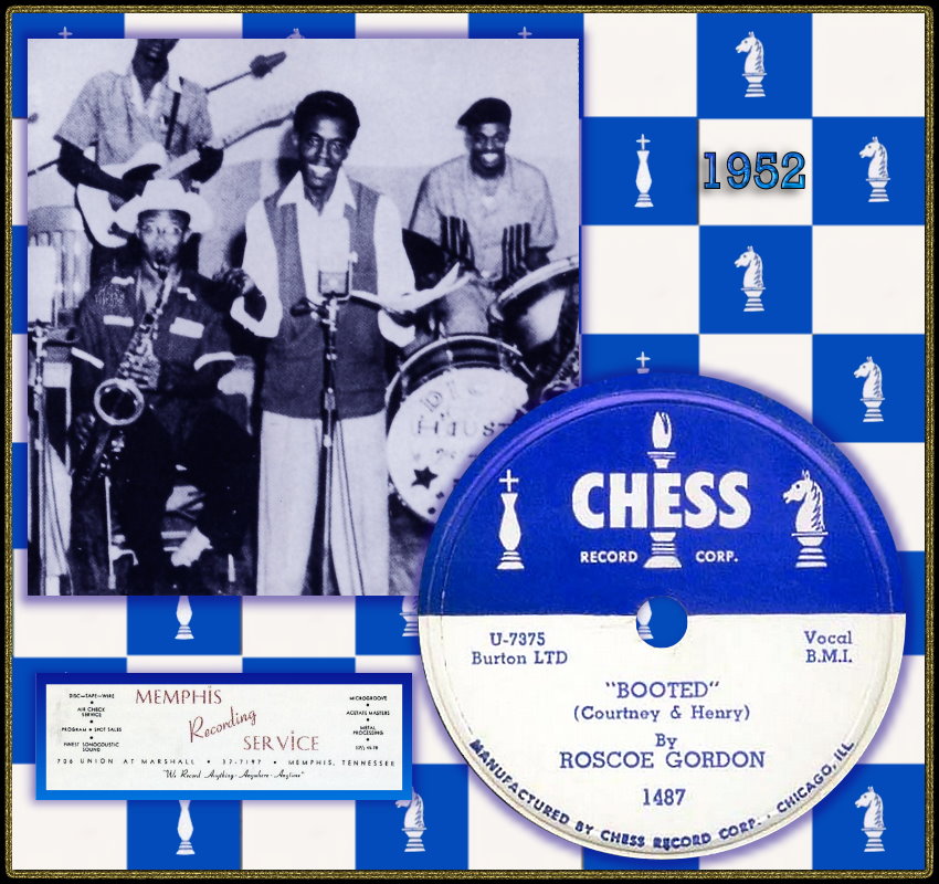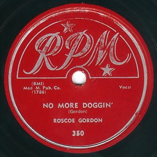 Anfang 1951 kam er erstmals zu Sam Phillips in die 706 Union, um Titel für Bihari's Modern/RPM Records aufzunehmen. Bereits im Herbst 1951 landete Roscoe Gordon And His Orchestra (!) mit dem Titel “Saddle The Cow (And Milked The Horse)“ auf RPM 324x45 # 9 der R&B-Charts. Der Fuchs Sam Phillips nahm sich bei den Aufnahmesessions auch die Freiheit, ein Demo des Titels “Booted“ abzuzweigen und den Chess-Brüdern in Chicago vorzuschlagen. Der Titel wurde folglich parallel auf Chess 1487 veröffentlicht und erreichte im Februar 1952 auf RPM 344x45 # 1 der R&B-Charts, trotz aller Streitigkeiten hinter den Kulissen. Im April 1952 erreichte “No More Doggin’“ auf RPM 350x45 # 2 der R&B-Charts.