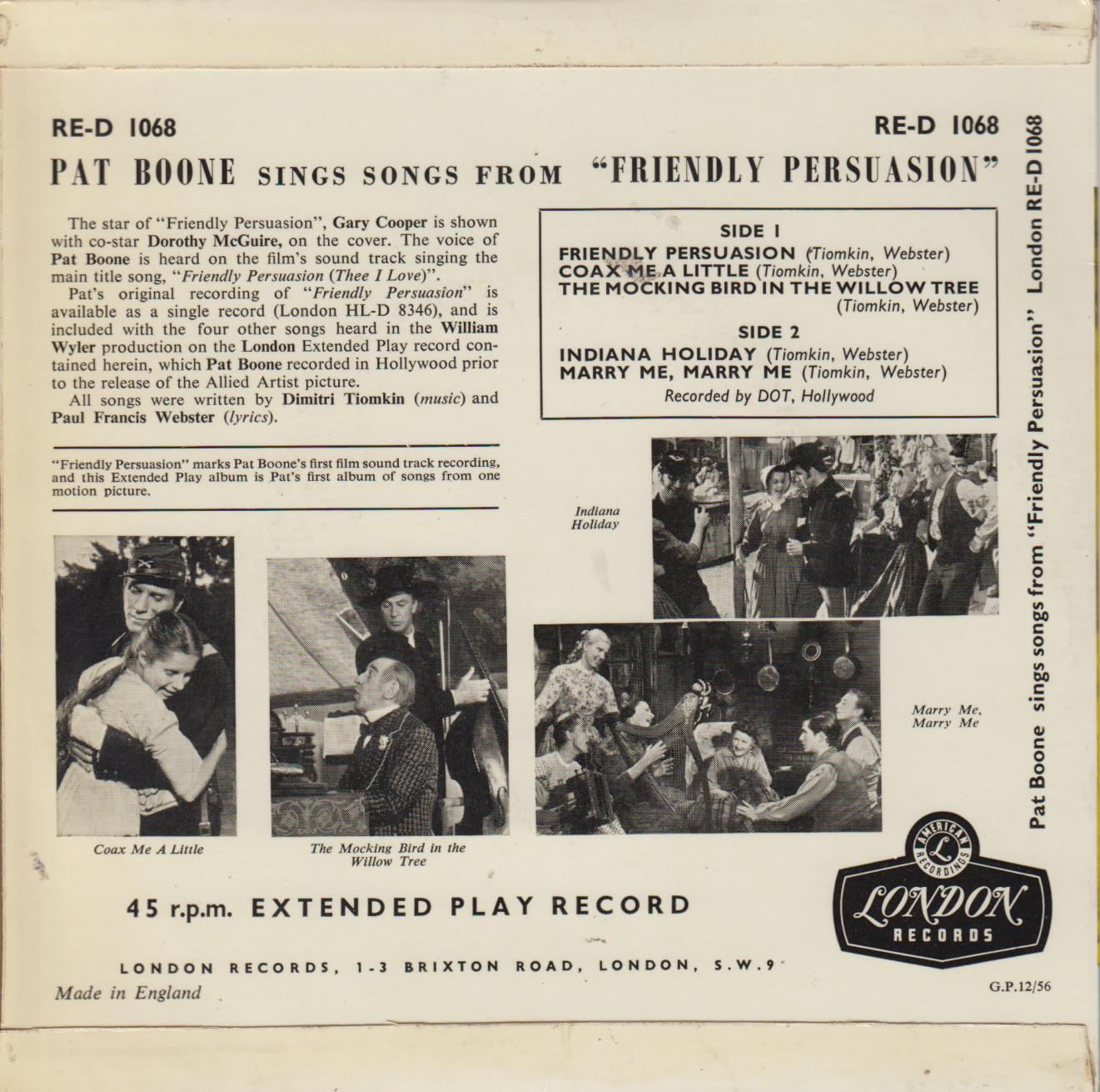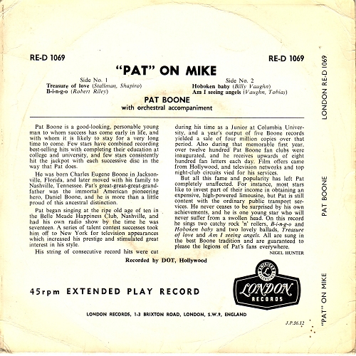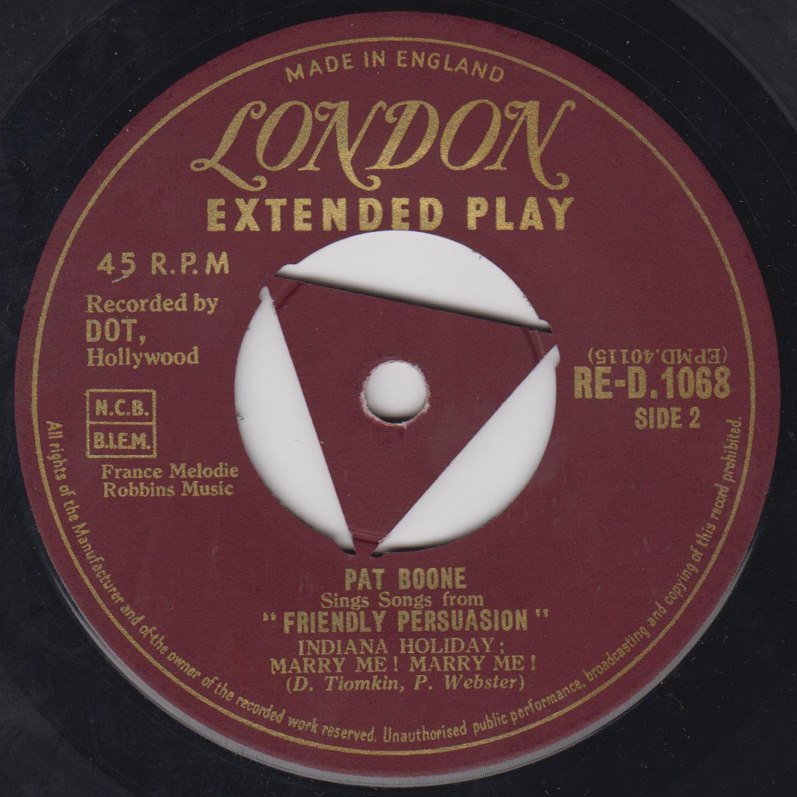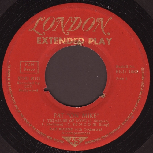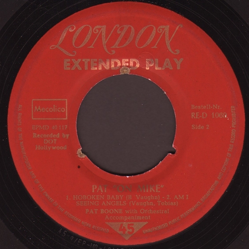 in der Serie London RE-F-D-O-U (englisches cover/ deutsche Platte) gab es auch 2 Pat Boone EP's. Die Weihnachts EP wurde bereits vorgestellt, hier die andere EP: