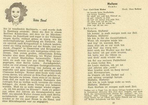 zwischen 1948 und 1950 hat Rita Paul ein halbes Dutzend Lieder auf dem Regina-Label herausgebracht. Das war wunderbarer deutscher Swing.