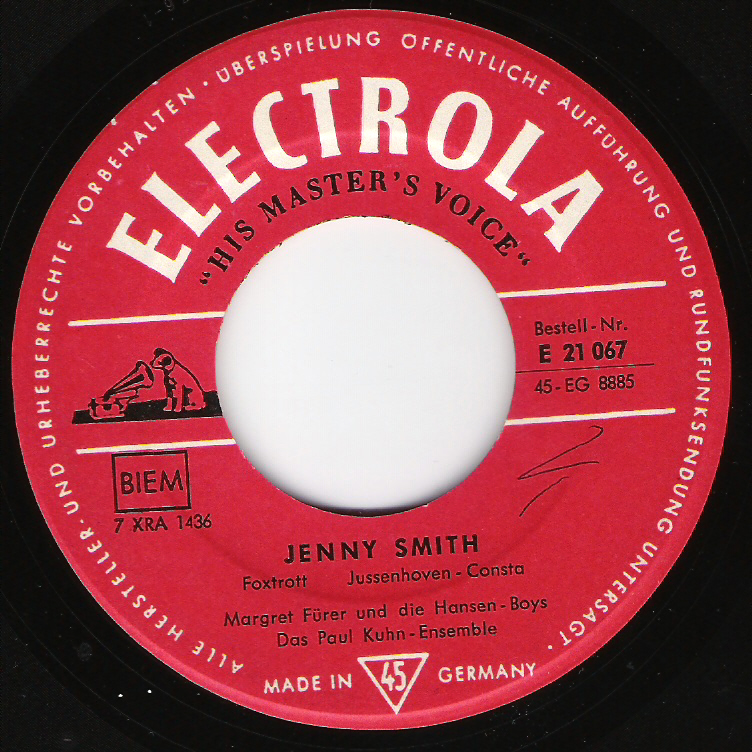 "Ich hab geträumt" / "Jenny Smith" (Electrola 21067)