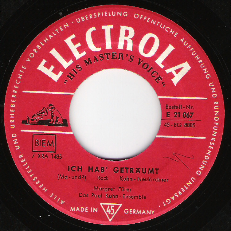 "Ich hab geträumt" von Margret Fürer ist eine schöne Rock-Nummer, ein bisschen an "Yakety Yak" angelehnt, mit Paulchen Kuhns herrlich "scheißegal"-mäßigem "Na und?!" nach jeder Strophe.