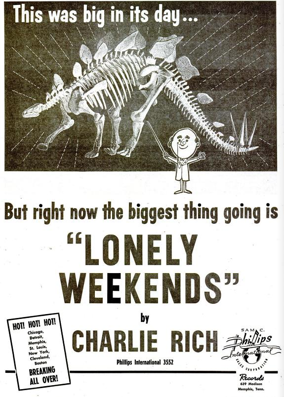Charlie Rich, geb. 14. Dezember 1932 in Forrest City, Arkansas, gest. 24. Juli 1995, erst 62-jährig, an einer Lungenembolie. Bei uns gab es von ihm bis 1962 nur eine einzige Single, trotzdem war er für uns damals (auch heute noch) ein wichtiger Vertreter des Rockabillie. Wir hatten natürlich damals keine Ahnung über Rockabillie aber wir wußten, dass ist unsere Musik.