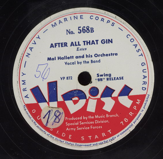hier einige 78'er mit 4 Titeln und einer Ansage von einem Militär-D.J. in LP-Grösse die teils