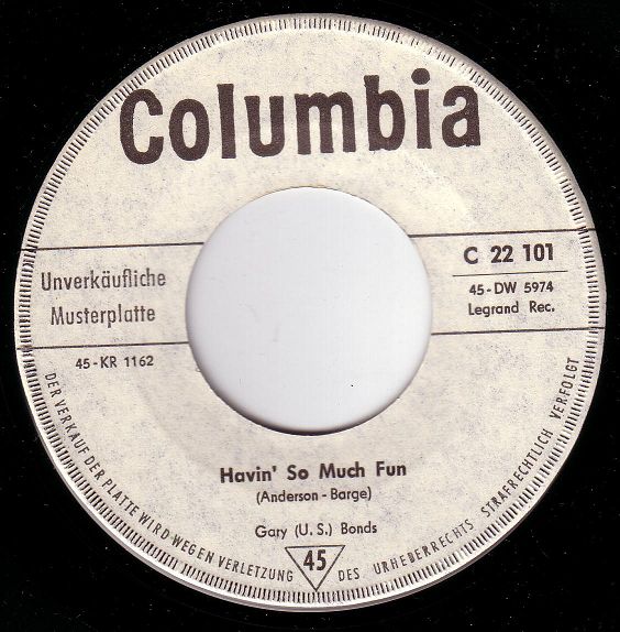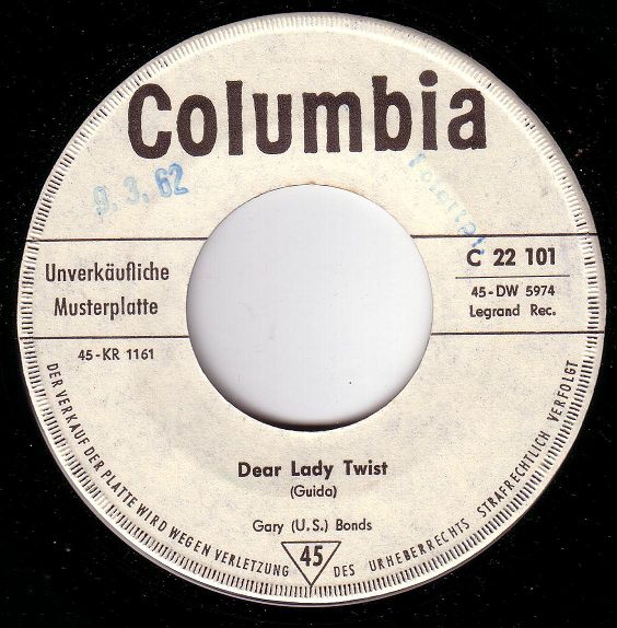 12 62....45 297 A....Gary (U. S.) Bonds Dear Lady Twist/Havin' So Much Fun (LEGRAND 1015 dann D: COLUMBIA 22101)