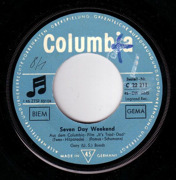 07 62....C 22 211....Gary (U. S.) Bonds Seven Day Weekend/Gettin' A Groove (LEGRAND 1019)