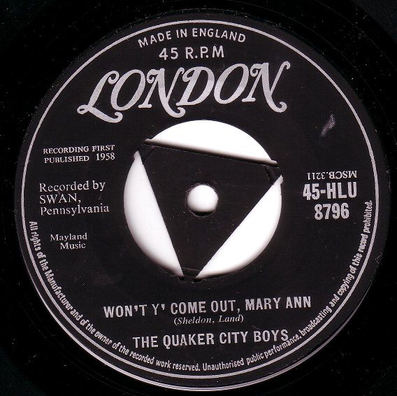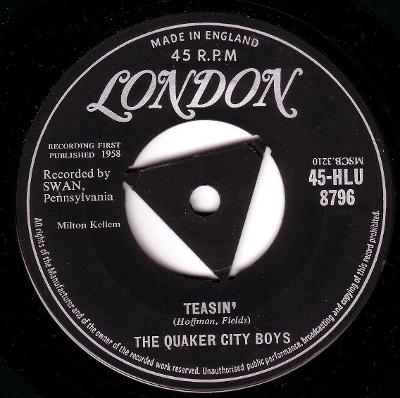 12 58....S4023A....THE QUAKER CITY BOYS Teasin'/B Won't Y' Come Out, Mary Ann
