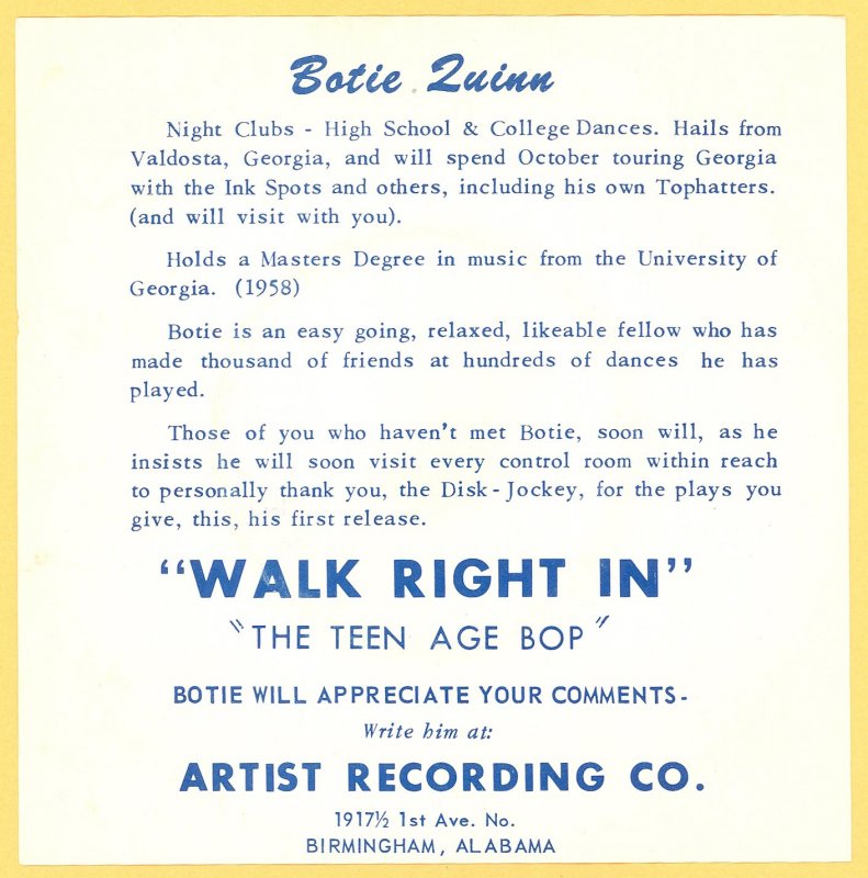 Leider konnte ich über Botie Quinn nichts rausfinden. Aufgrund meiner Single schätze ich ihn als schwarzen Rocknroller ein. Das kann natürlich total daneben liegen.