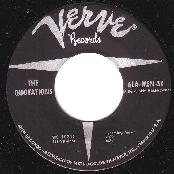 ?? 64....104 A....THE QUOTATIONS..Ala-Men-Sy (PRR-1986)/ B Imagination (PRR-1987) (VERVE 10245)