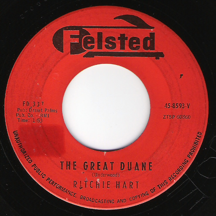 Ende 1959/Anfang 1960 erschien seine erste Platte "The Great Duane" / "I'm Hypnotized" (Felsted 45-8593). Die A-Seite ist eine witzige Hommage an den wesentlich bekannteren Arizona-Rocker Duane Eddy. Der Song handelt davon, dass er mit seiner Freundin auf ein Konzert des "Great Duane" geht und sie an den Twangy-Gitarristen verliert. Das Ganze musikalisch ausgeführt mit Twangy Guitar und von lauten Juchzern begleitetem Sax-Solo à la Duane Eddy. Die Rückseite "I'm Hypnotized" ist eine nicht ganz so wilde, aber ebenfalls hörenswerte Rockabilly-Nummer.