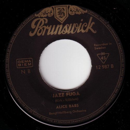 1959 Studio Jazz mit ALICE BABS auf Electrola (ALICE BABS-voc, PAUL KUHN-p, KURT BECKER-vib, WILLY SCHWEDEN-g, JOHNNY FISCHER-b, STUFF COMBE-d),