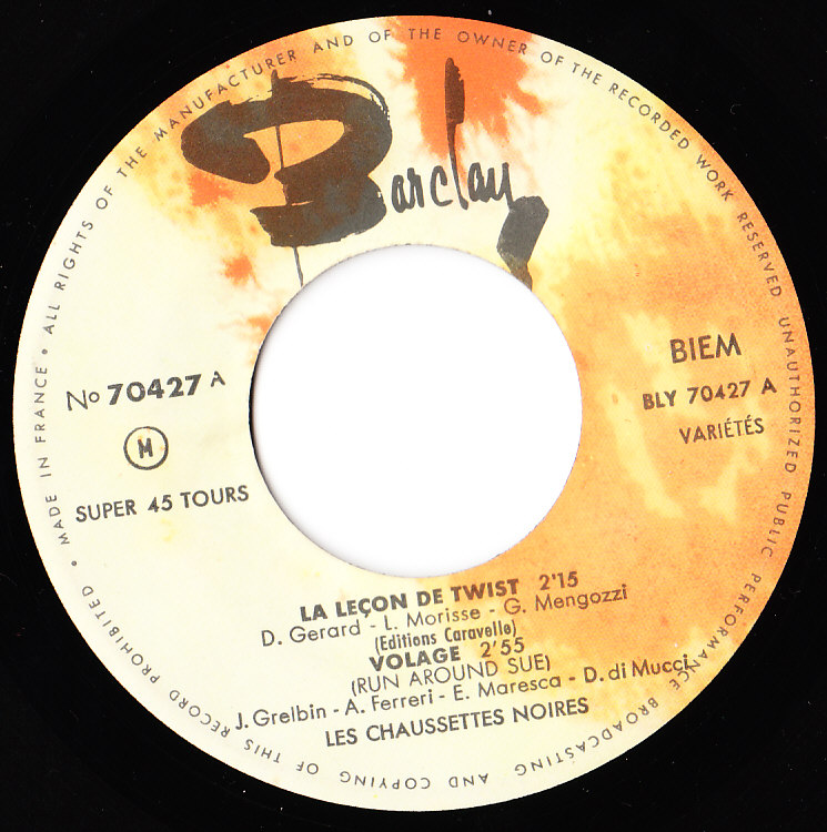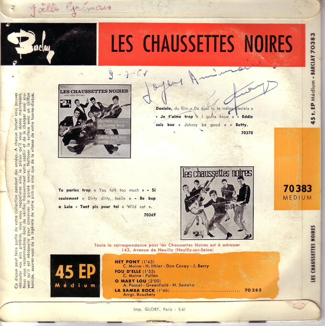 Die französischen Gitarre-Gruppen, oft auch mit Lead-Sänger, waren bei uns in Wien nicht erst Mitte der 60er-Jahre, sondern bereits 1960, 1961 sehr populär. Bei uns hat es ein Raucherkino - die Wiener kennen alle das Rondell - gegeben, wo man eines Tages eine Bild-Musicbox aufgestellt hat und da sind ausschließlich französische Aufnahmen gezeigt worden. Wir wußten daher schon damals, dass die spanische Gruppe Los Machucambos eigentlich aus Paris kam. Für die Popularität der aus Frankreich kommenden Formationen mag diese Bild-Musicbox auch verantwortlich gewesen sein. Lange Einleitung, kürzerer Abschluß: Dieter erwähnte einmal irrtümlich die Chaussettes statt der Chats Sauvages. Hier nun die Les Chaussettes Noires (das heißt: Die schwarzen Socken, ka Schmäh)