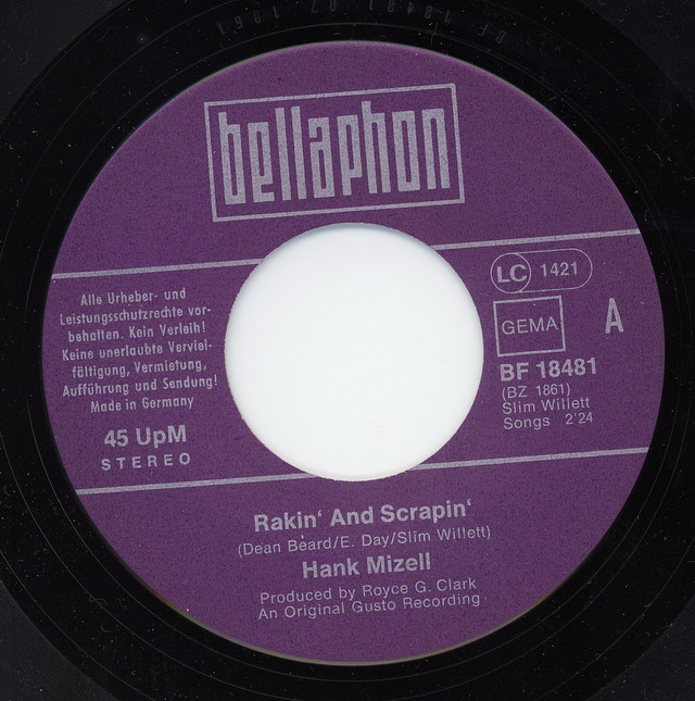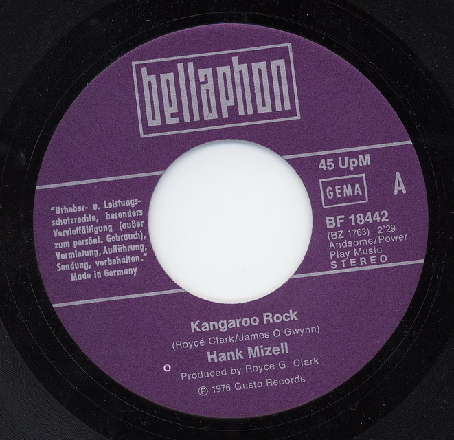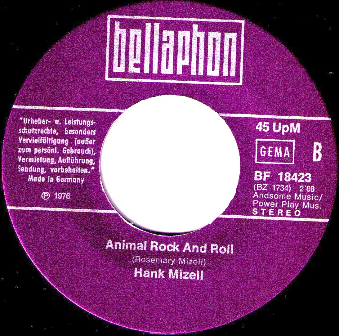 50 Cent mußte ich für Frank Rothe und seine Deutsche Originalversion von Hank Mizell's "Jungle Rock" auf dem Flohmarkt entrichten. Die flotte Scheibe aus 1975 weckte meine Neugier. Mit dem Original Artist, Hank Mizell, wußte ich wenig anzufangen. In den holländischen Charts kam Hank Mizell 1975 auf Platz Nummer 1. In meinen Ohren klang das nach 50's Rockabbily und so ist es auch.