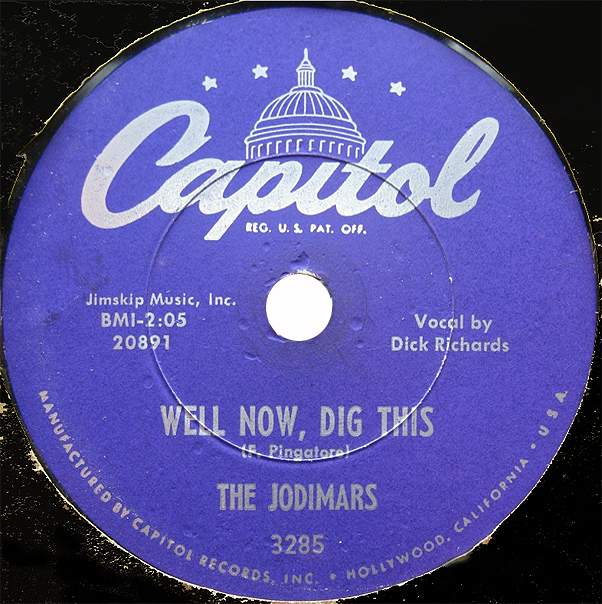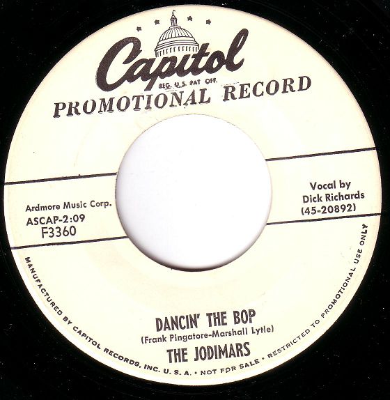 Joey Ambrose (Joey d'Ambrosio), Saxophone, Dick Richards (Dick Bocelli), Gesang und Schlaginstrumente, und Marshall Lytle, Bass, hatten Streit mit ihrem Chef Bill Haley. Es ging natürlich um Geld und so verließen sie die Comets und gründeten mit dem Gitarristen Chuck Hess, dem Pianisten Jim Buffington und dem Schlagzeuger Max Daffner eine neue Band, damit a bissl Göd einekummt. Sie nannten sich nach dem Beginn ihrer drei Vornamen Joey, Dick und Marshall The Jodimars. Hier nun ihre Single-Disco: