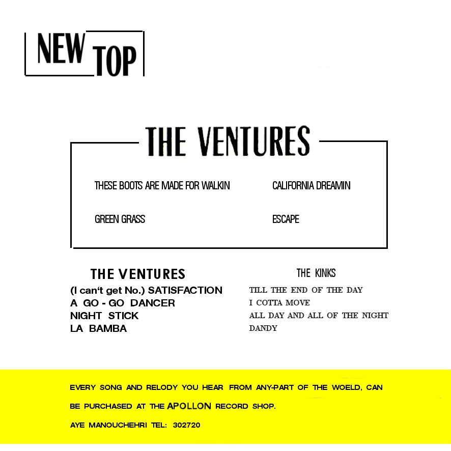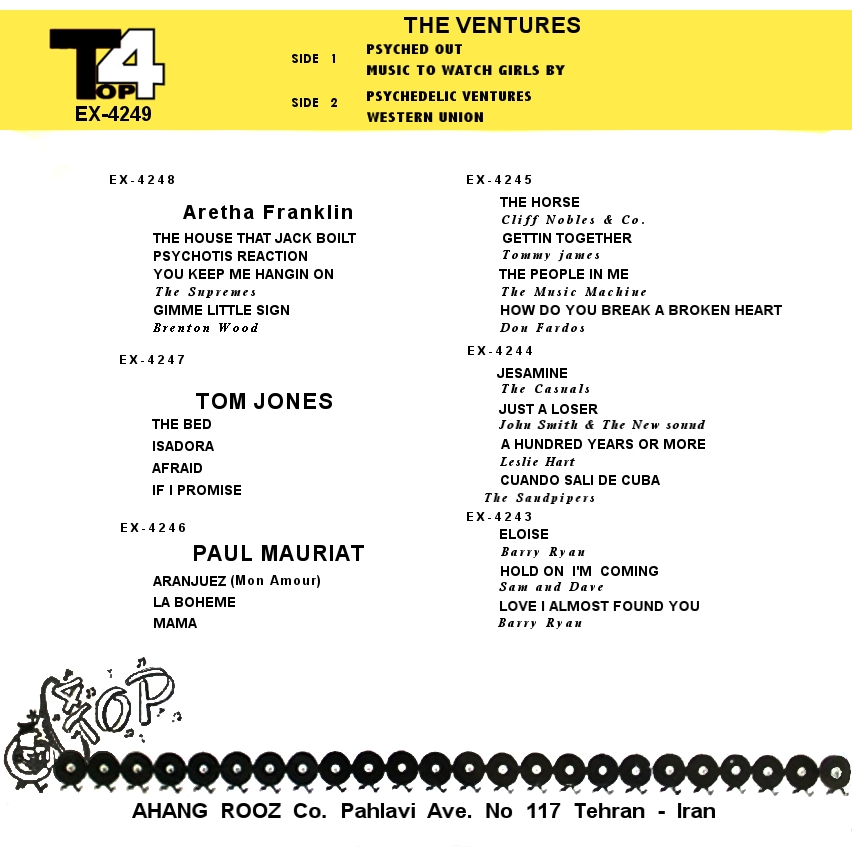 Sehr schöne Ventures EP's aus dem Iran. Die Scans hat Pierre Fankhauser, Frankreich zur Verfügung gestellt. Vinyl aus anderen Ländern folgt demnächst.