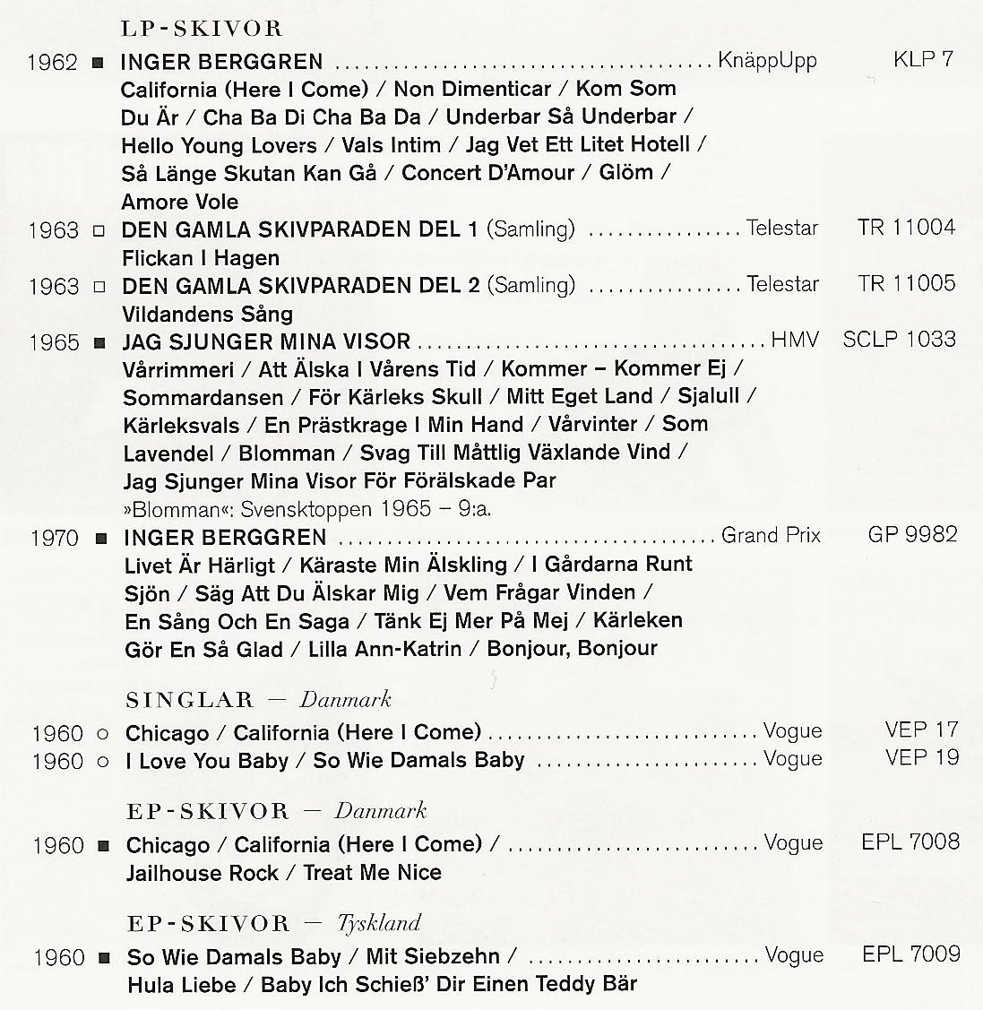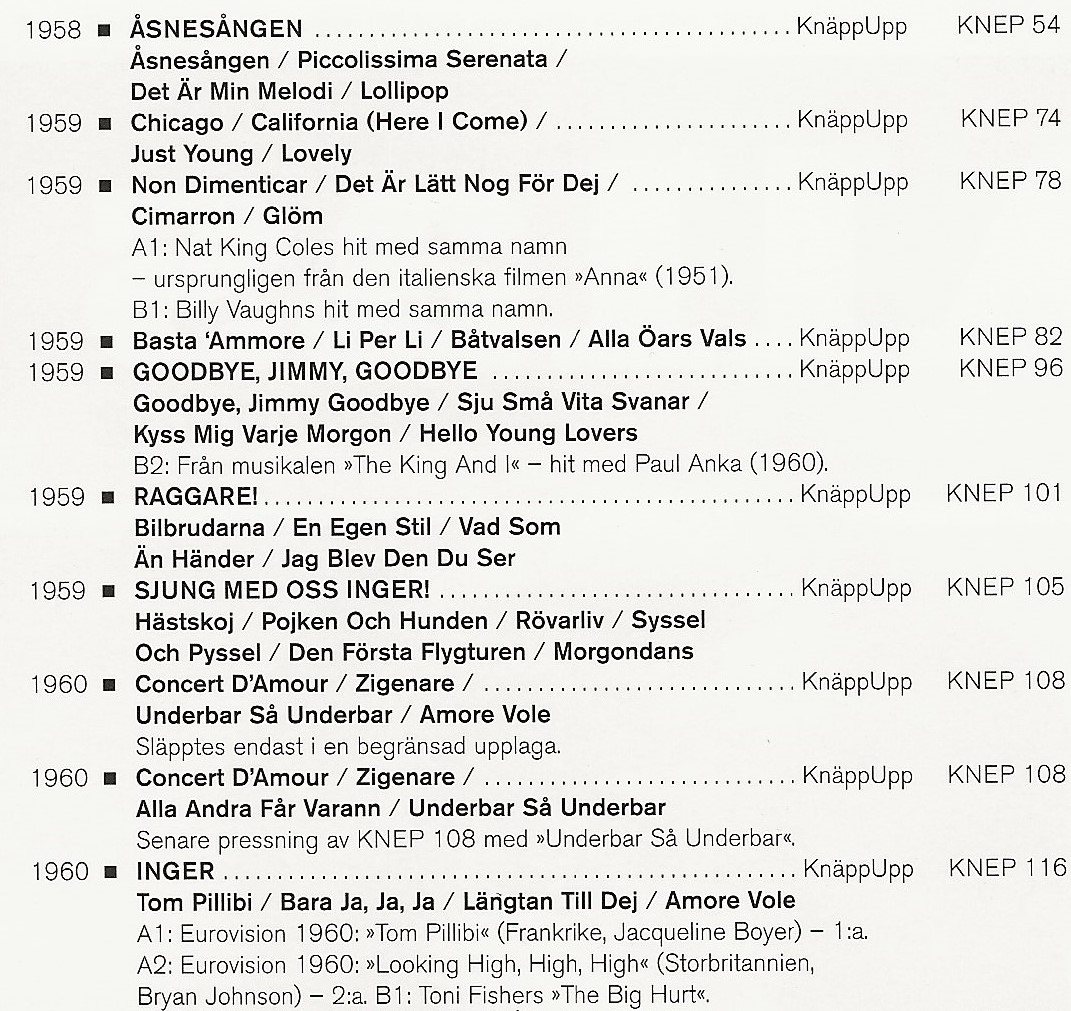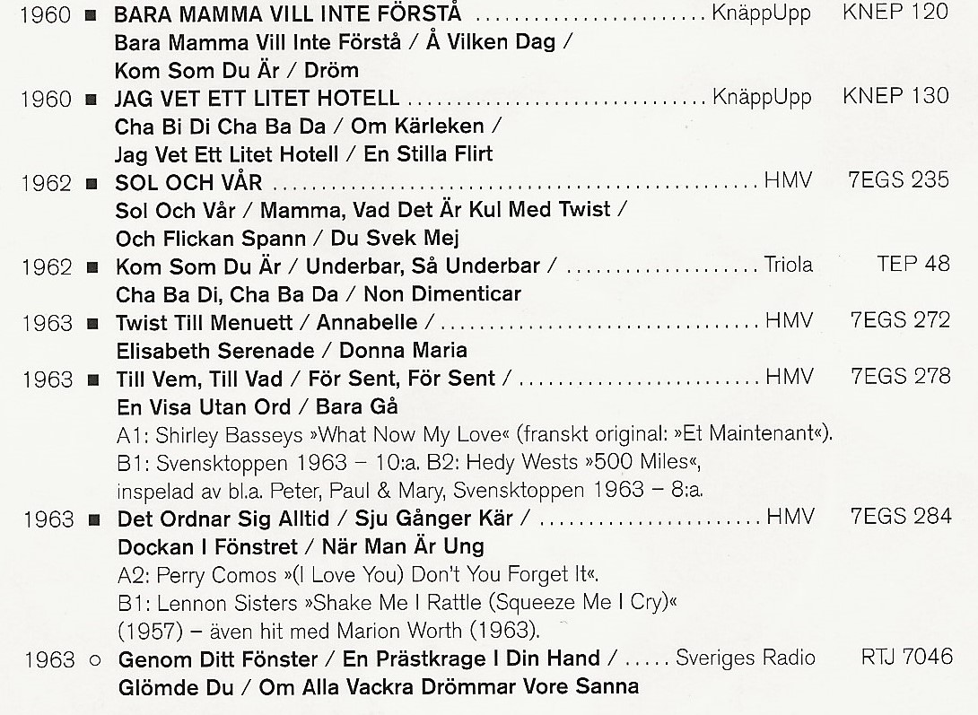 Singles bis 1962, von denen "Karleksvals" und "Vals Intim"