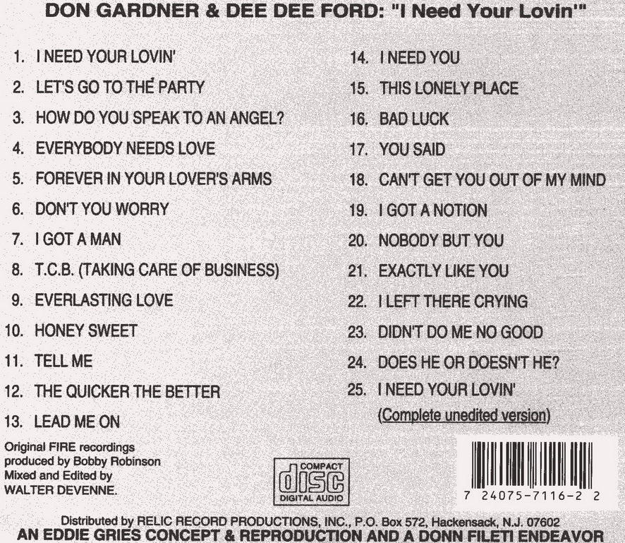 Don Gardner (geb. am 09.05.1931 in Philadelphia, Pennsylvania) und Dee Dee Ford (geb. als Wrecial Holloway 1936 in Minden, Louisiana) haben in der Zeit von 1962 - 1965 ein R&B-Duo gebildet.