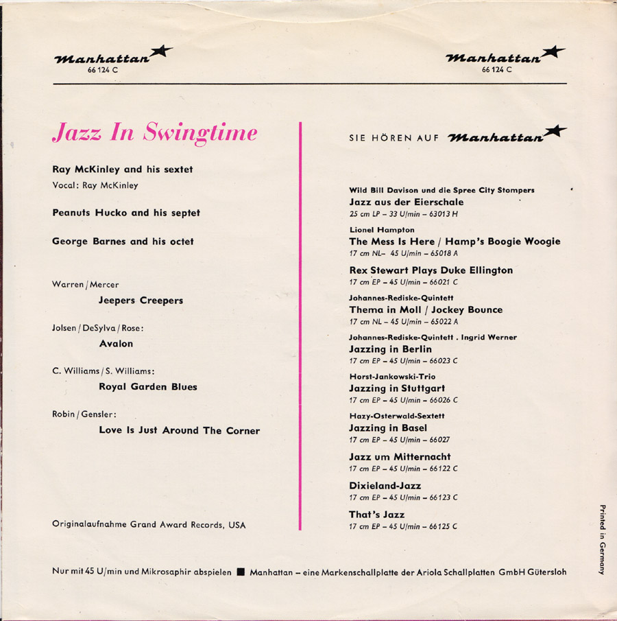 Eine Deutsche Jazz Ep ( Siehe Scan ) des Labels Manhatten gehört zu