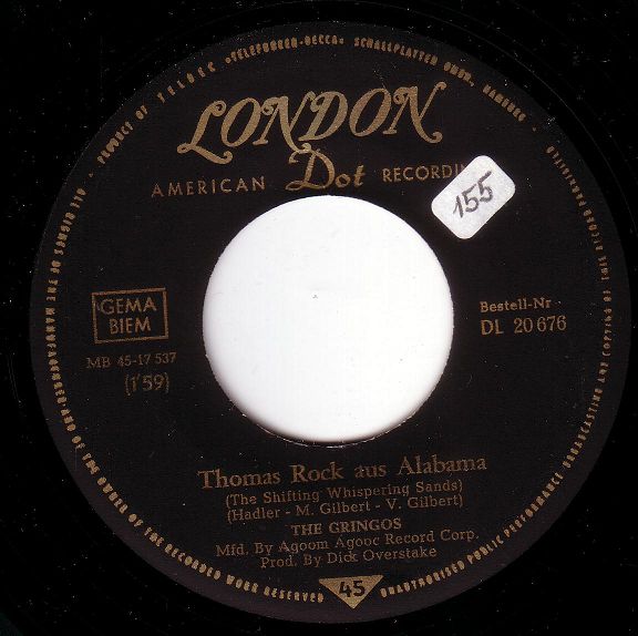 der Titel "The Shifting Whispering Sands" (M. Gilbert/V. Gilbert) aus 1955 ist mir vom Orchester Billy Vaughn bekannt. Der Titel wurde eingedeutscht zu "Thomas Rock aus Alabama", u.a. von TOM MILLER und die ROSARIOS (Das COMEDIEN-QUARTETT) 1956 auf Heliodor 45 0007.