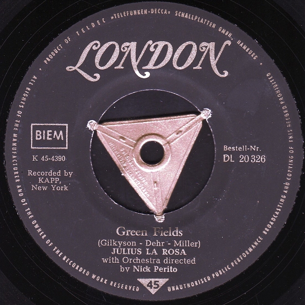 Habe hier 2 singles mit dem titel " greenfeelds " ich nahm bisher an das ,das original von den Brothers Four ist . Nun hab ich eine single bekommen von Roberta Lee mit Greenfeelds . Es handelt sich um das selbe Lied = selbe Komponisten . Von den Brothers Four ist sie von 1060 und von Roberta Lee 1958 . Also logisch das Roberta Lee es vorher rausbrachte. Die Roberta Lee version ist auch etwas mehr R&B lastig , wobei die Brothers Four es weicher brachten . Wer kann mir noch genauere Angaben machen. ????? Hier noch die scans der Platten .