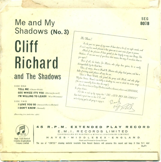 Sehr schöne Cliff Richard & The Shadows EP's aus England. Die Scans hat Pierre Fankhauser, Frankreich zur Verfügung gestellt.