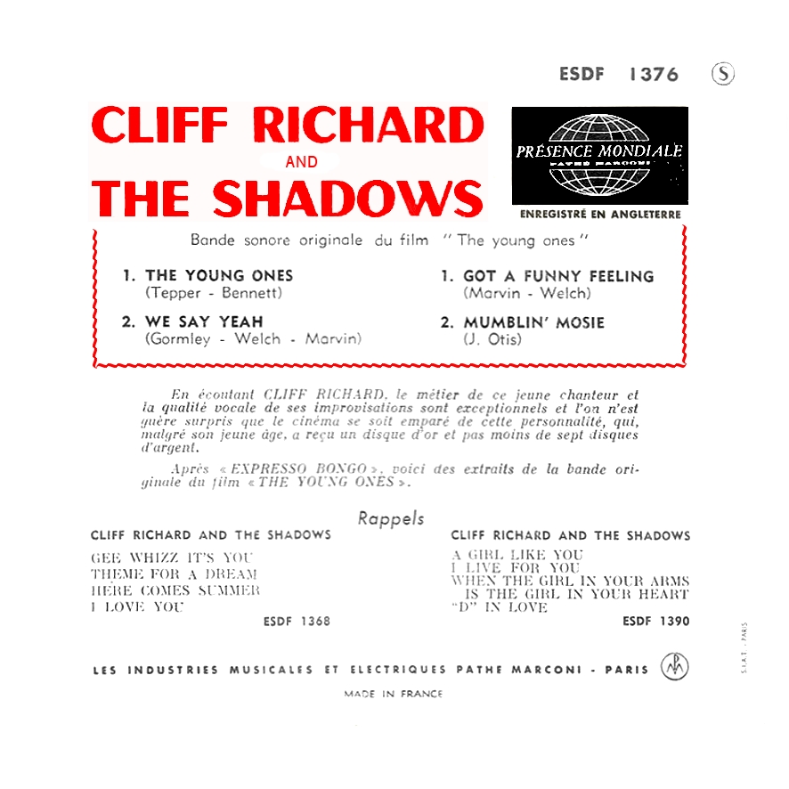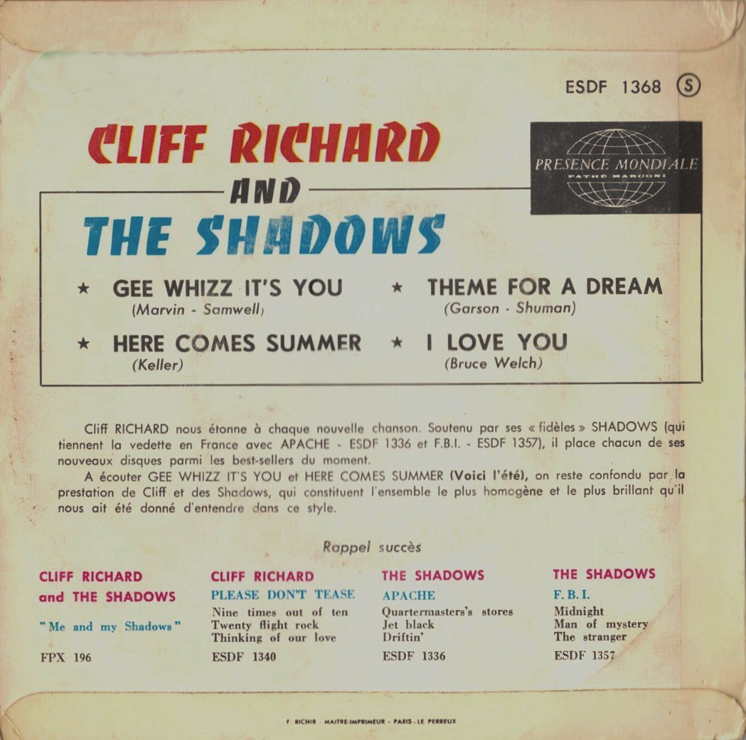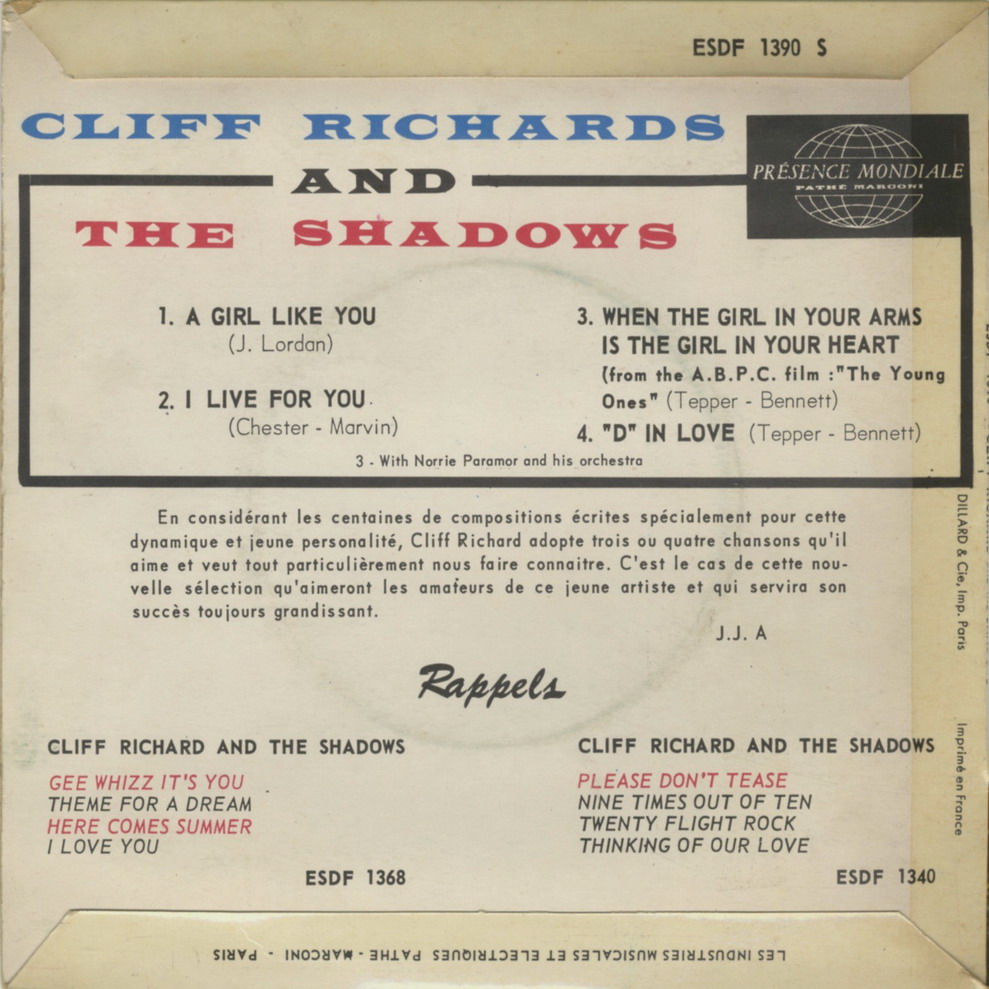 Sehr schöne Cliff Richard & The Shadows EP's aus Frankreich. Die Scans hat Pierre Fankhauser, Frankreich zur Verfügung gestellt.