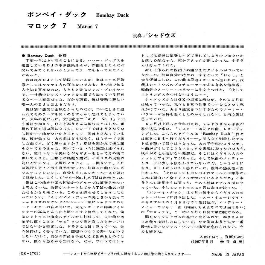 Sehr schöne Shadows Singles aus Japan. Die Scans hat Pierre Fankhauser, Frankreich zur Verfügung gestellt.