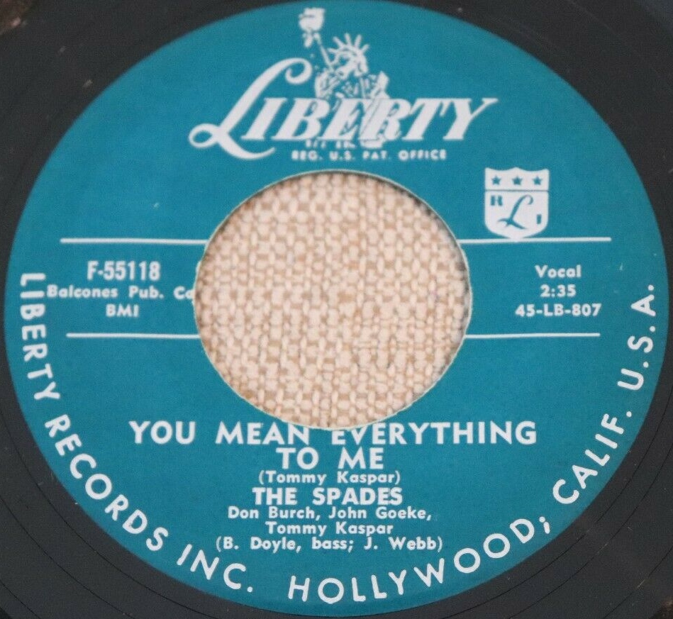 ?? 57....OR 100....THE SPADES Don Burch, John Goeke, Tommy Kaspar (B. Doyle, bass; J. Webb)..You Mean Everything To Me/OR 200....Baby (dann LIBERTY 55118)