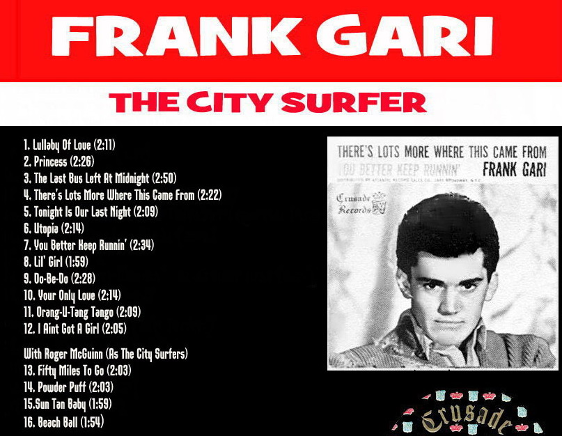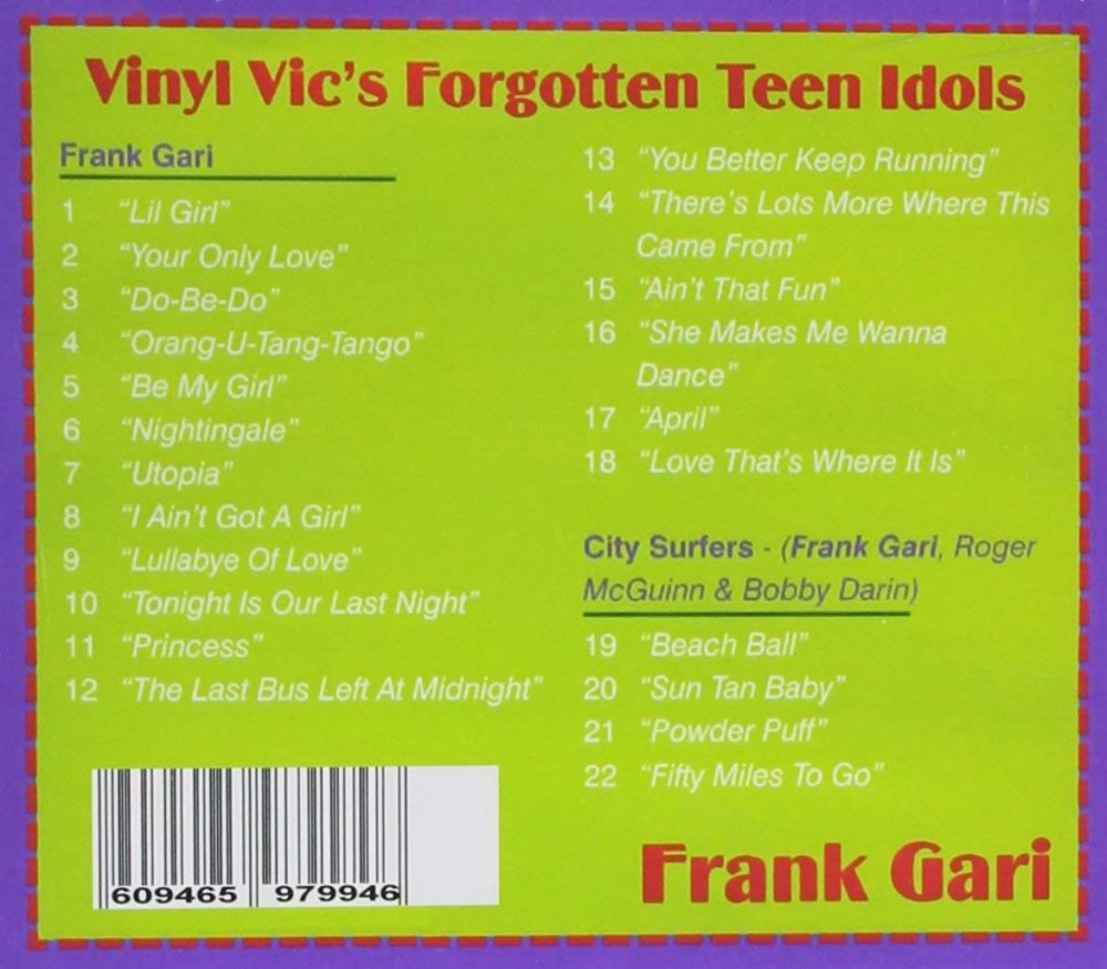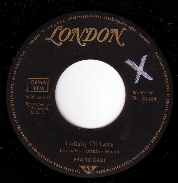 Ein "One-Single-Star" auf der deutschen LONDON. Frank Gari, geboren am 1. April 1942 in New York City als Frank Daniel Garifalo, ist ein populärer Sänger und Songwriter der 50er- und frühen 60er-Jahre. Seine bekanntesten Titel waren "Utopia", "Lullaby Of Love" und "Princess", die alle drei die Top 40 erreichten. In der Kürze liegt die Würze.