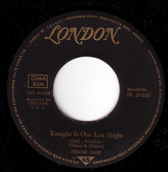 06 61....45-HLU 9371....FRANK GARI..Lullaby Of Love/Tonight Is Our Last Night (CRUSADE 1021)