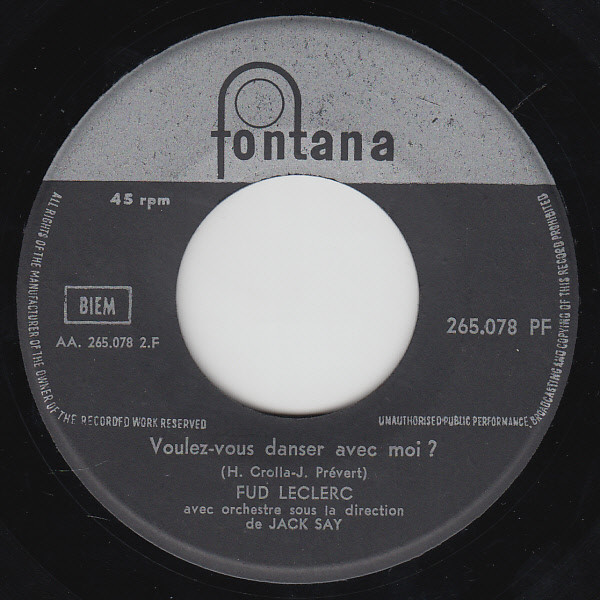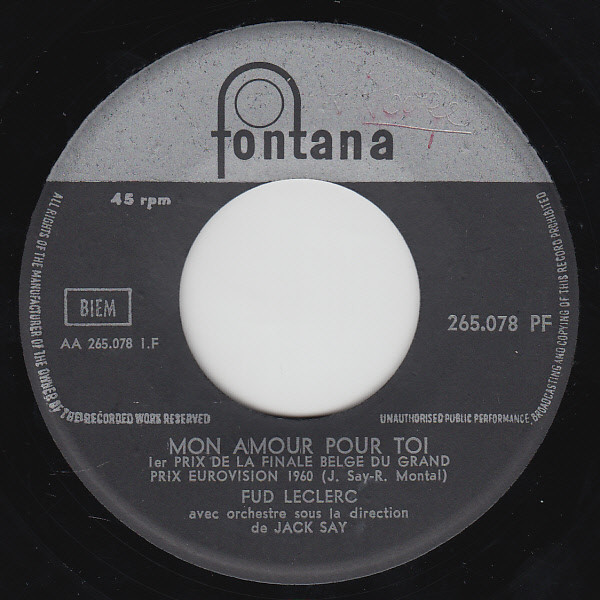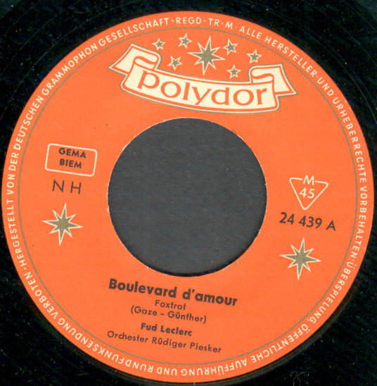 LECLERC, FUD (FERNAND URBAIN DOMINIC LECLERCQ) * 17.10.1924 in Montlucon/Belgien, + 20.09.2010, belgischer Sänger, sympathisierte mit dem Chanson,