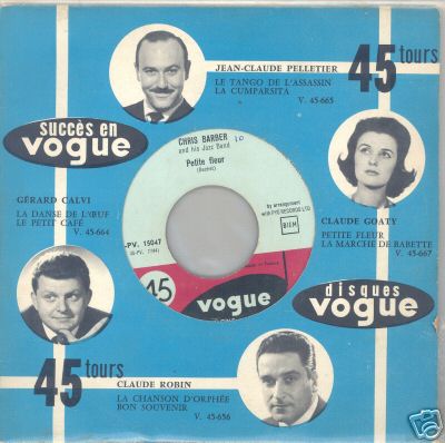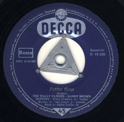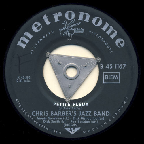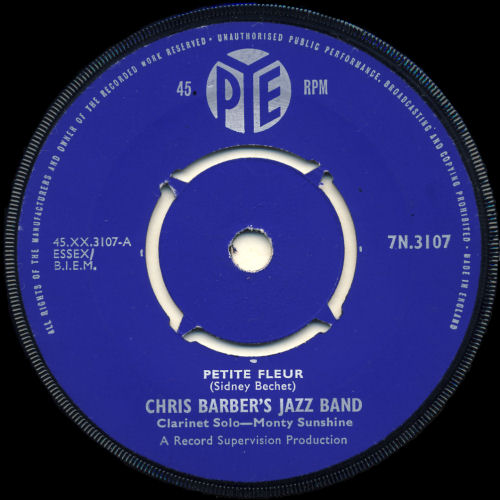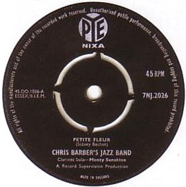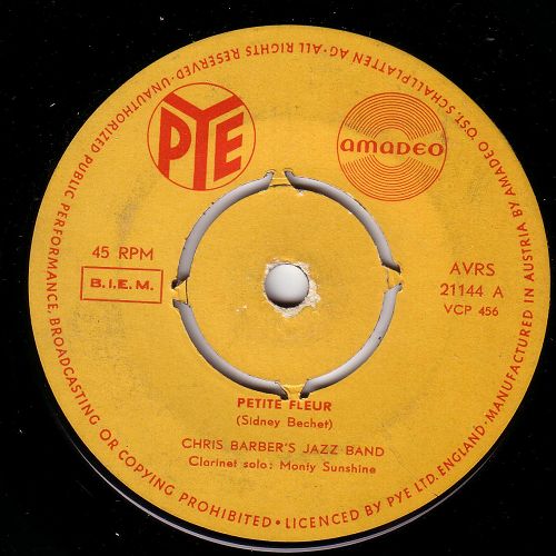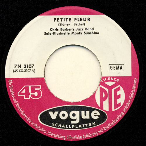 Wer kennt nicht "Petite fleur"? Ich glaube fast ein jeder und wahrscheinlich in erster Linie in der Interpretation von Chris Barber. Aber der Titel stammt bereits aus den frühen 50ern, wurde von Sidney Bechet geschrieben und er spielte ihn auch selbst mit seinem Sopransaxofon. Bei Chris Barber war dann eine Klarinette an den Lippen von Monty Sunshine im Einsatz. Die Barber-Fassung war im deutschsprachigen Raum so populär, dass sie in kurzer Zeit auf drei verschiedenen Labels erschien (siehe Scans) und bei uns immer mit dem "Wildcat Blues" auf der Rückseite. Kurz darauf gab es von Teddy Johnson & Pearl Carr eine englisch gesungene Version die in etwas weniger als zwei Jahren Henri Salvador zu einer französichen Fassung inspirierte. Dann dauerte es nurmehr fünf Monate, bis auch die deutsche Version zu haben war