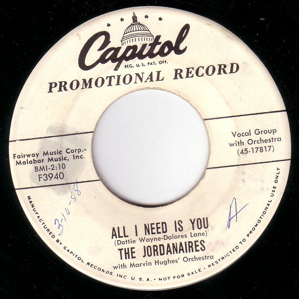 Die Ursprünge von der Gesangsgruppe The Jordanaires gehen auf das Jahr 1948 zurück. In Springfield/Missouri gründeten Bill Matthews-1. tenor, Bob Hubbard-2. tenor/lead, Bill's Bruder Warren "Monty" Matthews-baritone, Culley Holt-bass und Pianist Bob Money The Melodizing Matthews. Nach drei Jahren wurde der Pianist Bob Money (* 04. Mai 1929, + 10. Februar 2005) 1950 durch Gordon Stoker (* 03. August 1924) ersetzt. Diese Besetzung hielt bis 1952, doch dann kam Bewegung in die Mannschaft: Bob Hubbard schied aus und Hoyt Hawkins (* 31. März 1927) nahm seinen Platz ein, später gingen Monty und Bill Matthews (* 09. September 1923, + 10. Februar 2003). Hawkins wechselte in die Baritonlage und die neue Lead-Stimme hieß Neal Matthews (* 26. Oktober 1929) und Don Bruce übernahm den Part des 1. Tenors. Später verringerte man sich auf ein Quartett, in dem der Pianist Stoker (spielte übrigens auch später bei der Elvis-Aufnahme von “Hound Dog“ das Piano) auch die Stimmlage des 1. Tenors übernahm. Seit 1949 waren sie in Nashville tätig und erhielten eine Anstellung an der Grand Ole Opry. Ihre Schallplattenkarriere begannen sie 1950 bei Capitol Records. Ihre Hauptaufgabe bestand jedoch zukünftig darin, in den Aufnahmestudios von Nashville andere Solo-Interpreten mit ihrem Background-Gesang zu unterstützen.
