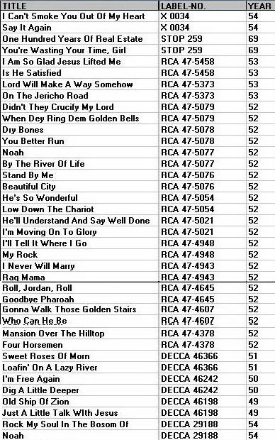 1954 gab es wieder personelle Veränderungen: Cully Holt (* 02. Juli 1925, + 28. Juni 1980), als letztes Mitglied der Ur-Formation und Autor des Titels “I’m Gonna Walk Dem Golden Stairs“, ging und es kam Hugh Jarrett, der später als DJ Karriere machte. Im line up Stoker, Hawkins, Matthews und Jarrett war es die Besetzung, die Elvis Presley in der Mitte der 50er Jahre bei vielen Hits gesanglich unterstütze. 1958 schied er aus und wurde durch die Bass-Stimme von Ray Walker (* 16. März 1934), Schulkamerad von Pat Boone, ersetzt. Ray’s besondere Stimme ist sehr gut bei den Titeln “A Fool Such As I“ oder “In My Father’s House“ zu hören. Hugh Jarrett erlag 78jährig am 31. Mai 2008 an den Folgen eines Autounfalls.