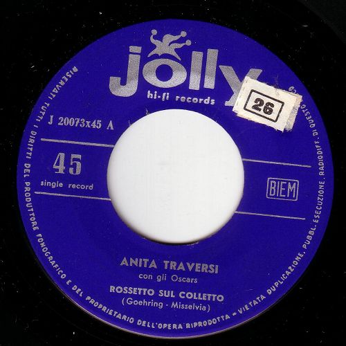 Anita Traversi, geboren am 25. Juli 1937 in Giubiasco/Tessin, verstorben am 25. September 1991 in Bellinzona/Tessin, war in den 1960er Jahren eine im deutschsprachigen Raum bekannte Schlagersängerin aus der italienischen Schweiz. 1962 erhielt sie von ARIOLA einen Vertrag und da wurde sie bei uns bekannt: