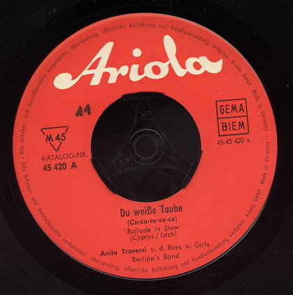 10 62....45 420 A....Anita Traversi u. d. Boys u. Girls Berlipp's Band Du weiße Taube (Cu-cu-ru-cu-cu)/Anita Traversi u. d. Boys Ein Kranz von roten Rosen