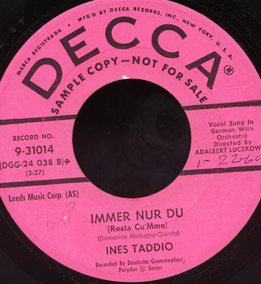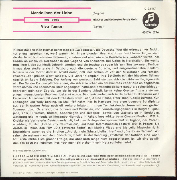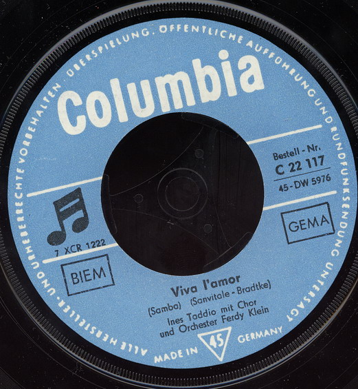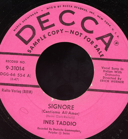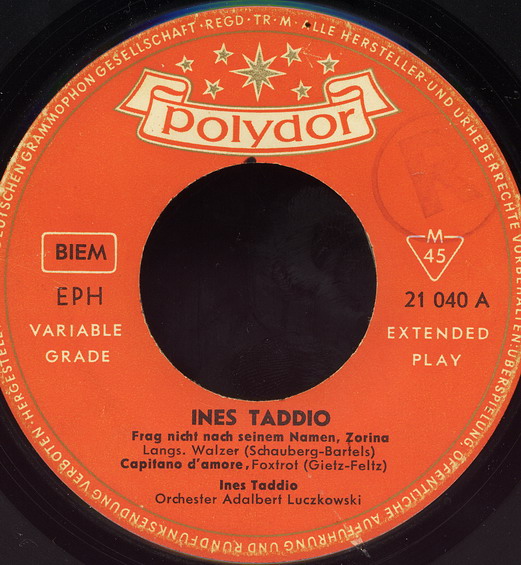 HEINZ GIETZ verpflichtet sie für den deutschen Markt, 1959-61 Polydor (u.a. "Goodbye, Jimmy, Goodbye"-1959, "Frag Nicht Nach Seinem Namen, Zorina"/"Capitano d’amore"-1959 & Das LUCAS QUARTETT, "Carusello Italiano"-1960, "Die Weiße Möwe"-1961),