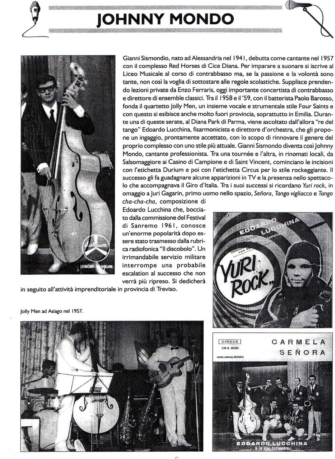 Wie Einige von euch sich sicherlich noch erinnern können suche ich Daten von Johnny Mondo: Labelname, Bestellnummer etc für die Single "Yuri Gagarin"/"Cara Cara Carolina". Bei der letzten Börse habe ich ganz billig eine Single von Edoardo Lucchina erstanden, lediglich wegen des Labels und der schönen Bildhülle. Wie ich mir die Platte daheim näher betrachtete merkte ich, dass die Vokalisten dieses Orchesters extra angeführt waren. Die Suppenwürze auf der A-Seite (Nando Maggi) hat mich keinesfalls emotionalisiert, aber beim Vokalisten der B-Seite warf es mich fast vom Hocker. Es war...............Johnny Mondo !!!