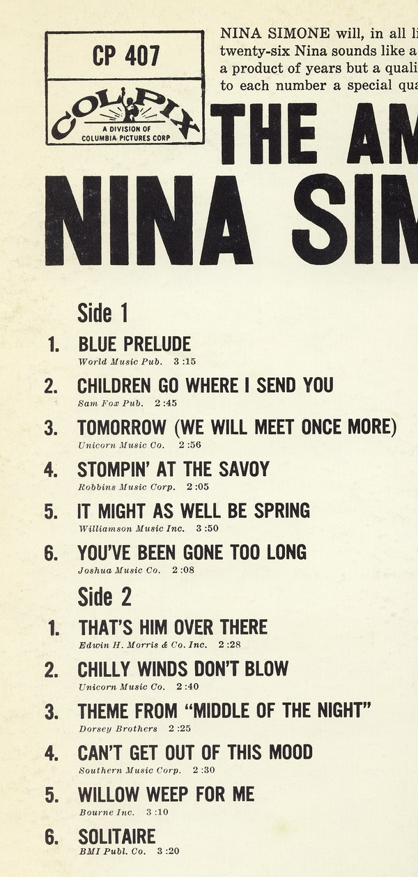 08 59....CP 124....NINA SIMONE Willow Weep For Me/Children Go Where I Send You
