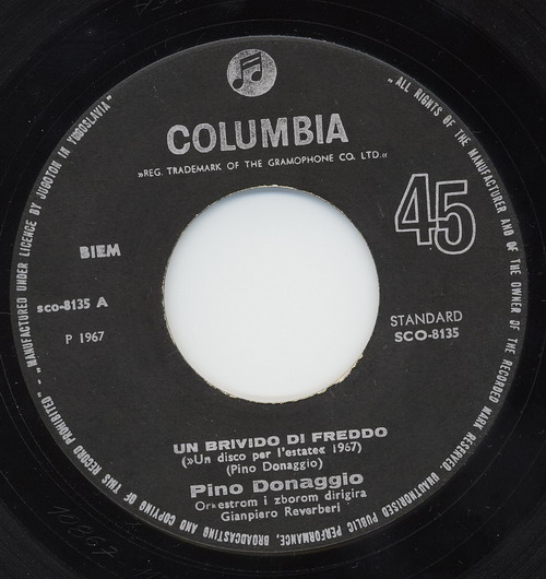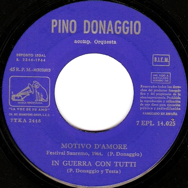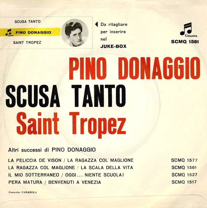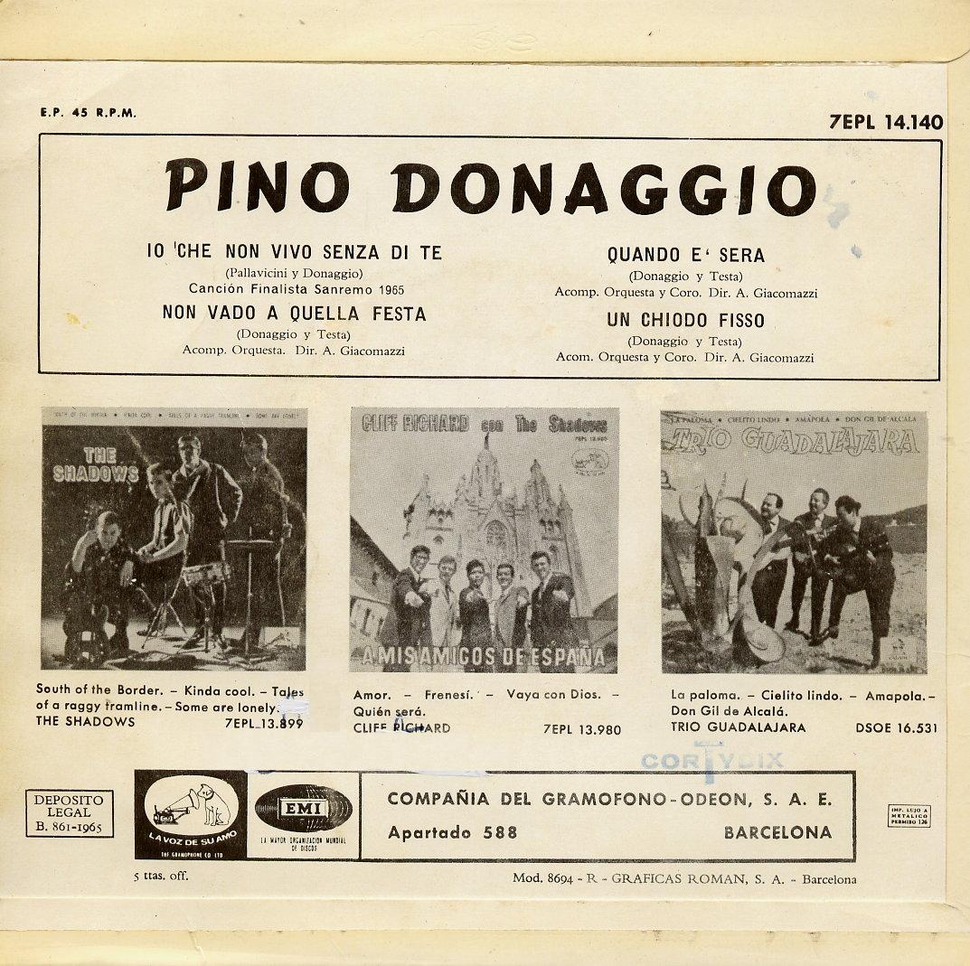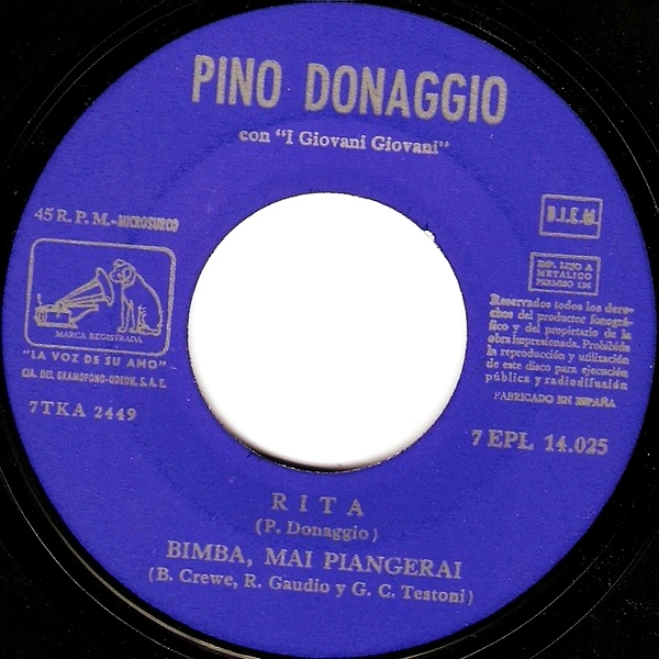 Noch ein Italiener und sogar ein rockiger und twistiger, obwohl seine Karriere garnicht so begann. Giuseppe "Pino" Donaggio wurde am 24. November 1941 in Burano, einer zu Venedig gehörenden Insel, geboren. Er studierte Violine am Benedetto Marcello Konservatorium in Venedig und wechselte dann zum Giuseppe Verdi Konservatorium nach Mailand. Bereits mit 14 Jahren hatte er seine erstes Debut mit der Violine bei einem Vivaldi-Konzert im italienischen Rundfunk. Nachdem er den Rocknroll entdeckt hatte, beendete er seine Klassik-Karriere im Sommer 1959 nach einem Gesangs-Debut mit Paul Anka. Danach begann er seine eigenen Songs zu schreiben. Bereits 1961 hatte er die ersten Erfolge in San Remo als Interpret seiner eigenen Lieder. Mit "Come Sinfonia" erreichte er in den italienischen Charts Platz eins, dem bis 1967 noch weitere Platzierungen, einschließlich zwei weitere erste Plätze, folgten.