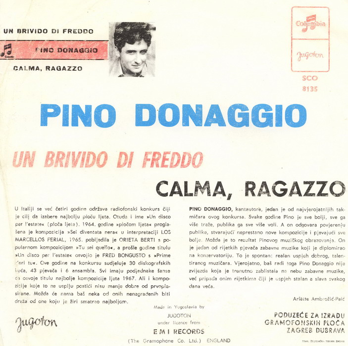 03 63....C 22 374....Pino Donaggio Giovane - Giovane (Schlagerfestival San Remo 1963) Originalaufnahme/Madison Tra Gli Angeli (I: COLUMBIA 1645/1617)