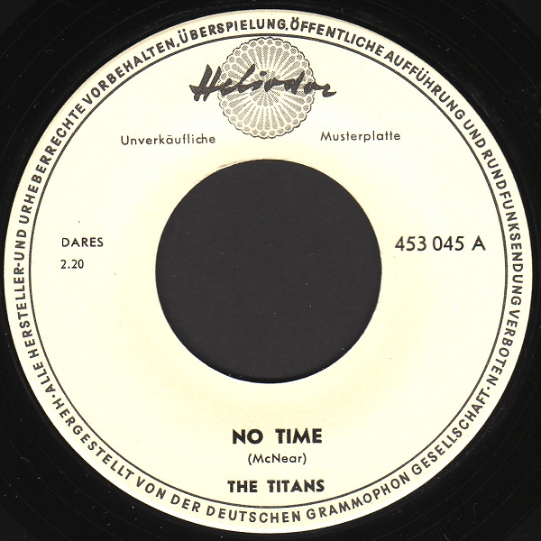 Original-Label: Class 244 (1959), deutsche Matritzenherstellung G 9 ( Juli/1959), Composer von A : “McNear” und B : “Thomas - Vikki”, deutsche Platte auf schwarzem Label, Placierung Hitparade in den USA: ??