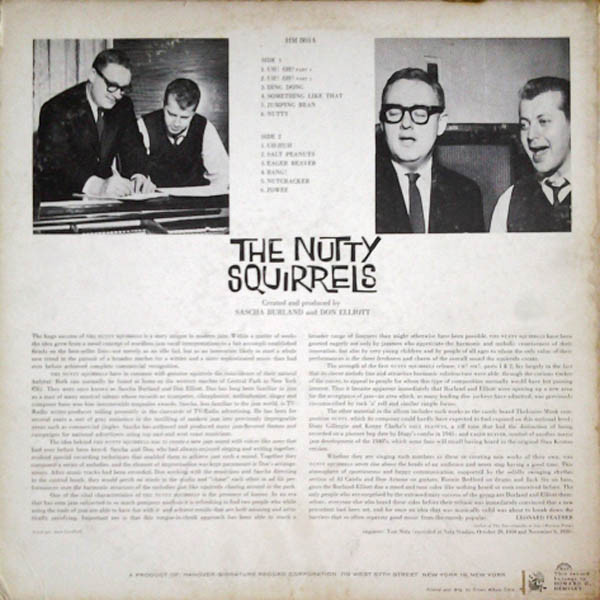 Andere Burland-Titel erscheinen auch auf Latin- und reinen Jazz-Veröffentlichungen, wobei seine Co-Writing-Partner in der Regel beeindruckend sind. "West Coast Blues" wird Burland und dem Gitarristen Wes Montgomery zugeschrieben, von denen anscheinend keiner einen besseren Titel finden konnte. Vielleicht sparte Burland seine kreativen Koteletts für seine Partnerschaft mit Don Elliot auf, mit dem er ein Paar neuartiger Alben kreierte, die ursprünglich den Nutty Squirrels zugeschrieben wurden, Zwei Streifenhörnchen-Charaktere, die jazzige Scat-Nummern sangen.