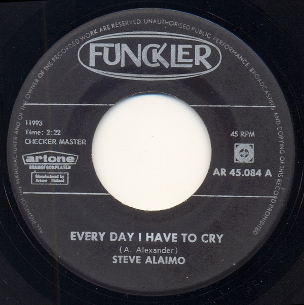 Und nun mein Favorit: "Every Day I have to cry". Die Erstpressung erschien 1962 auf Checker (1032). Meine Platte ist eine niederländische Funckler-Pressung aus 1963. Der Song wurde von Arthur Alexander geschrieben. Der hat ihn aber erst 1968 aufgenommen.