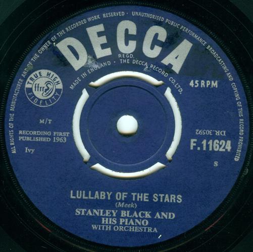 "Lullaby Of The Stars" halte ich für eine der schönsten Instrumentaltitel aus Joe Meek's "Feder". Meek hat den Titel mit den Tornados für den Film "Farewell Performance" aufgenommen, ist aber nicht auf Platte erschienen.