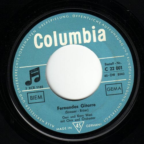Wieder etwas zum Raten oder zum Ergänzen für Fachleute für die deutsche Produktionen. Geri und Kary West müssen aufgrund der Matrix aus einer deutschen Produktion stammen. Ich habe diese Platte ganz zufällig und weiß leider nichts Weiteres über sie.