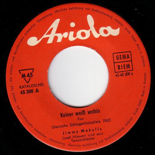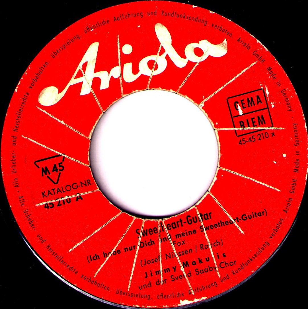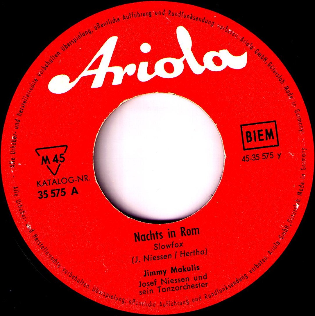 1959-63 Ariola (u.a. "Gitarren Klingen Leise Durch Die Nacht"-1959 (auch holländische u. griechische Fassungen), "Nachts In Rom"-1960 (englische Fassung "Seven Nights Of Rome"), "Sweetheart Guitar"-1961, "Bald Kommt Der Tag"-1963 u. Duettaufnahmen mit NINA ZACHA-1961/62 als NINA und JIMMY, LP "Unter Südlicher Sonne"),