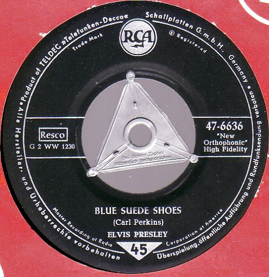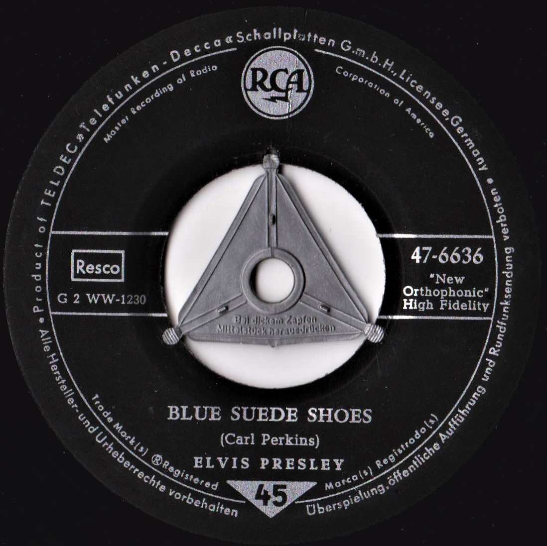 Die Matrix-Nummer und auch der handgeritzte Vermerk darunter sind identisch, auch das "Blue Suede Shoes" Label zeigt keinerlei Abweichungen.